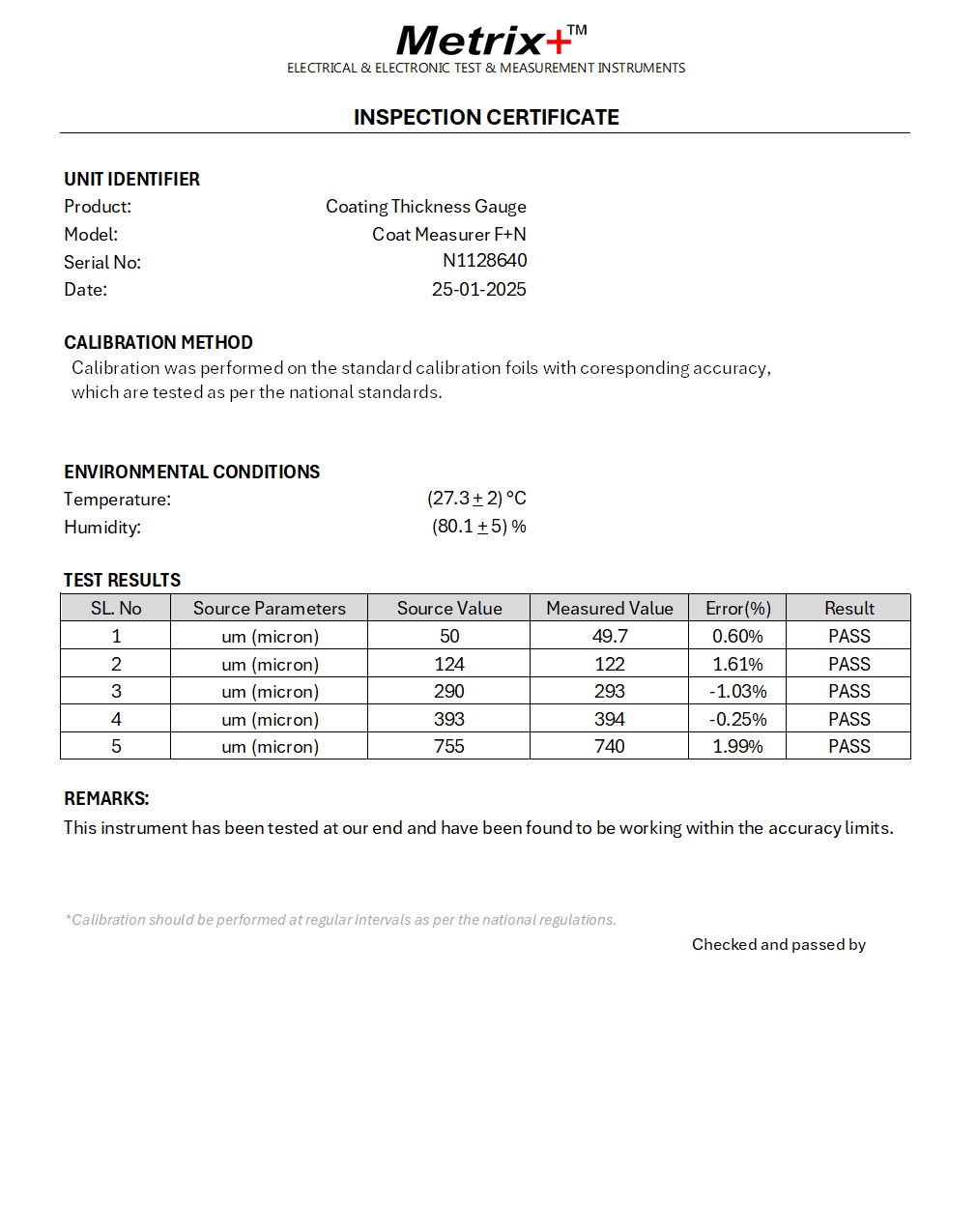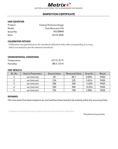 This meter comes with our in-house inspection certificate. For NABL calibration report, we levy extra charges and it takes 7-10 days for dispatch. Please contact us for NABL calibration requirement.